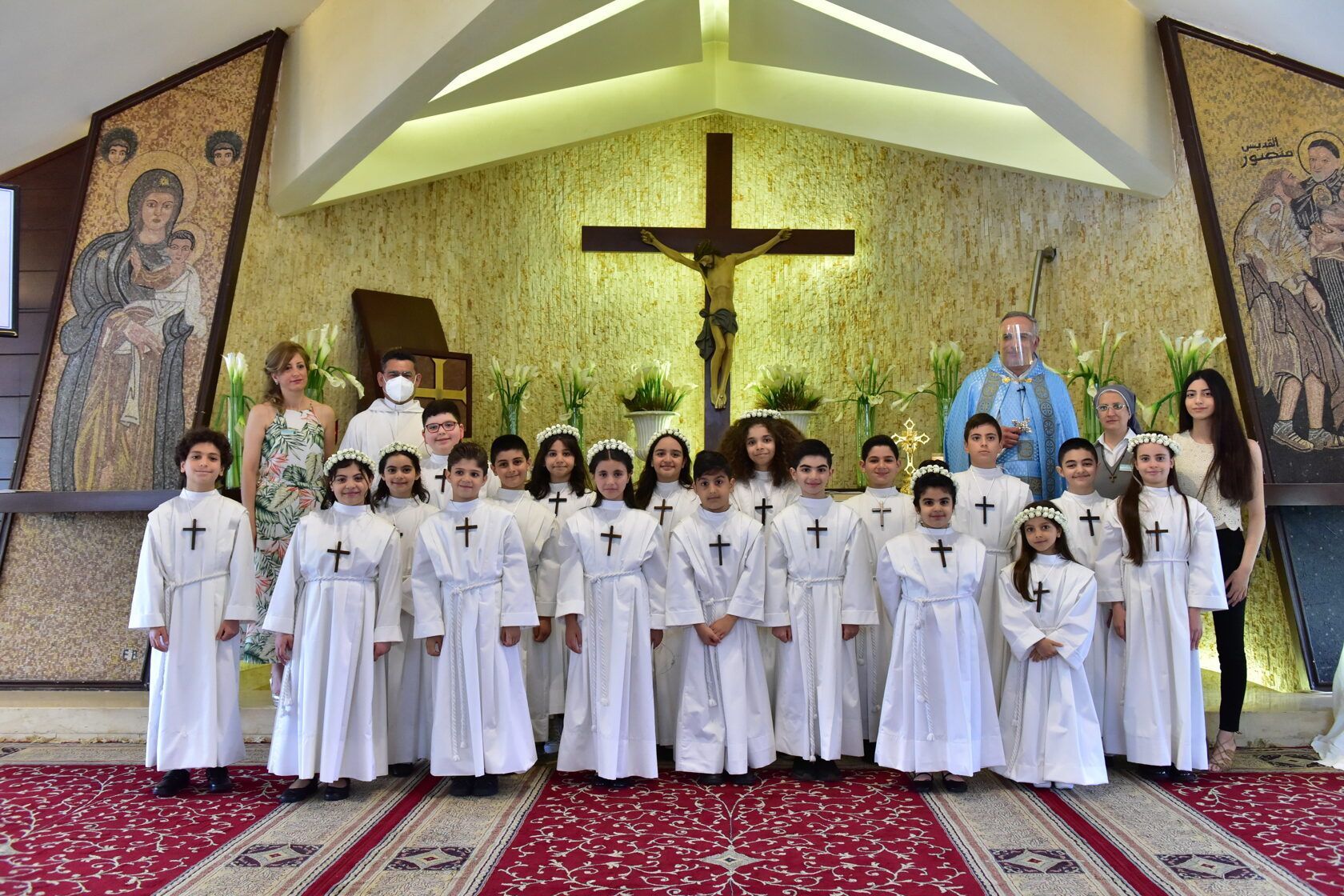 فكانت خليّة النّحل بكافة أعضائها (لجنة المناولة الأولى) متأهّبة للعمل بحماس ونشاط، رغم ما نعيشه من صعوبات عدّة في البلاد وبخاصّة وباء الكورونا. وأكيد مع اتّخاذ كافة الإجراءات والتّدابير الوقائيّة الممكنة للسّلامة العامّة، بدأنا مسيرة فوج 2021 مع 52 ولدًا باللقاءات online لمدة شهريْن، ثمّ التّمارين التّنظيميّة في الكنيسة لمدّة شهر ونصف، فرتبة التّوبة وصولًا للإحتفالات الموعودة، بحسب المواعيد التّاليّة :