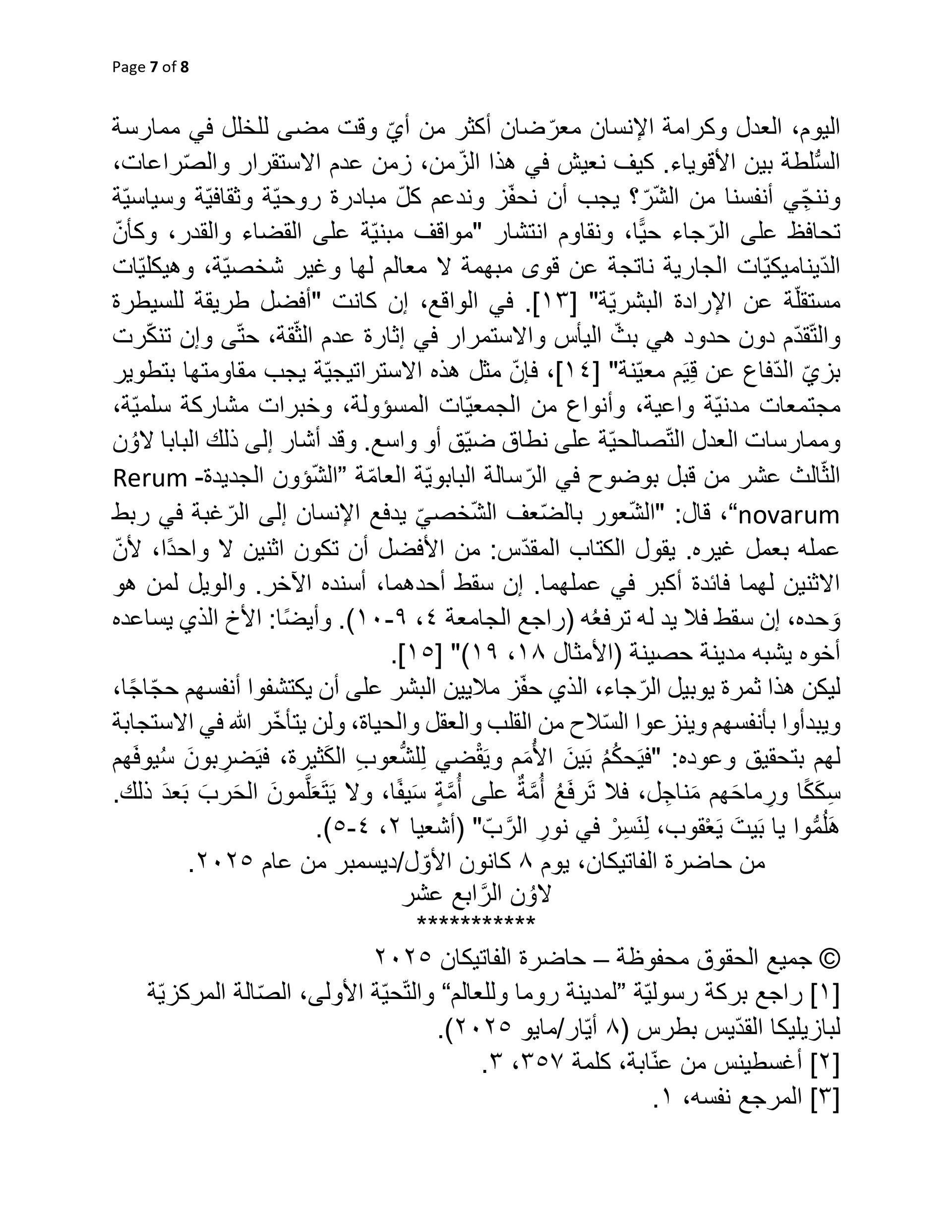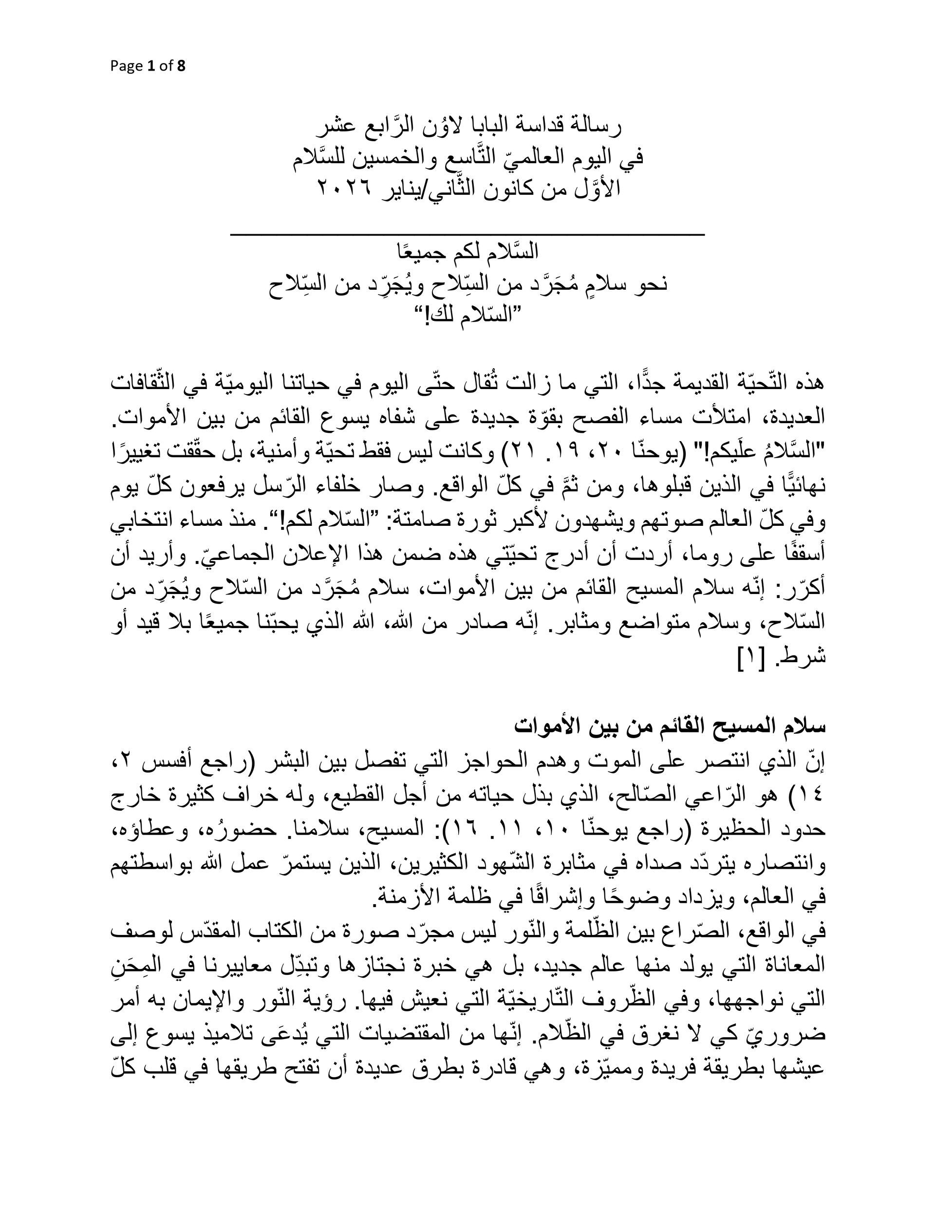 رسالة قداسة البابا لاوُن الرَّابع عشر