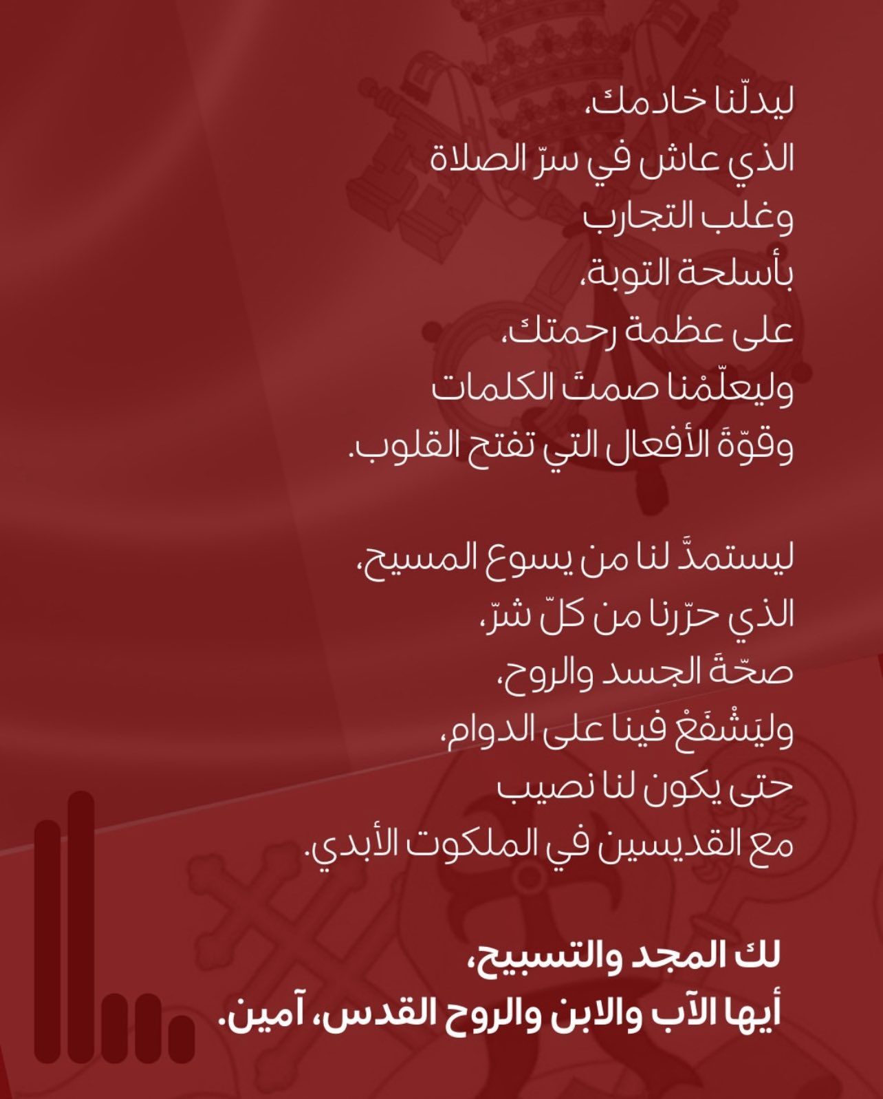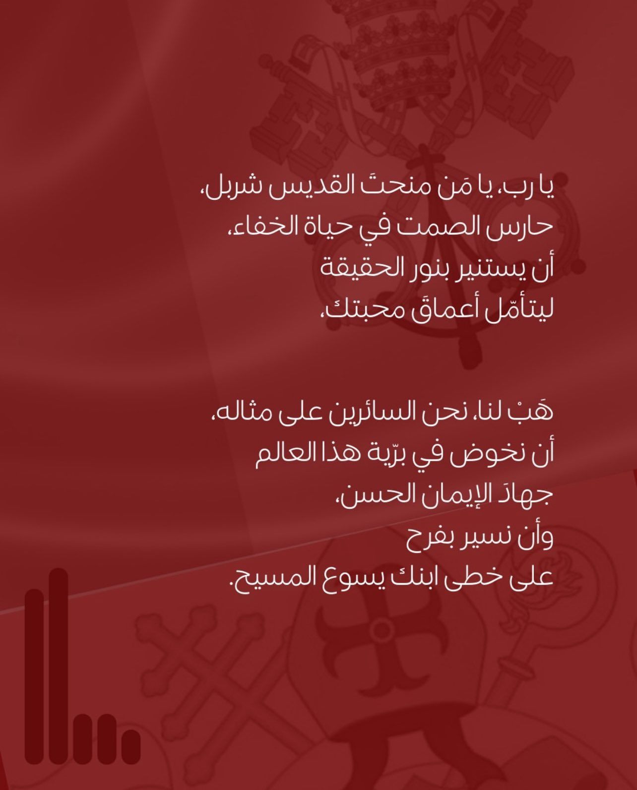 الصلاة التي سيتلوها البابا لاون الرابع عشر من أمام ضريح القدّيس شربل في دير مار مارون عنّايا