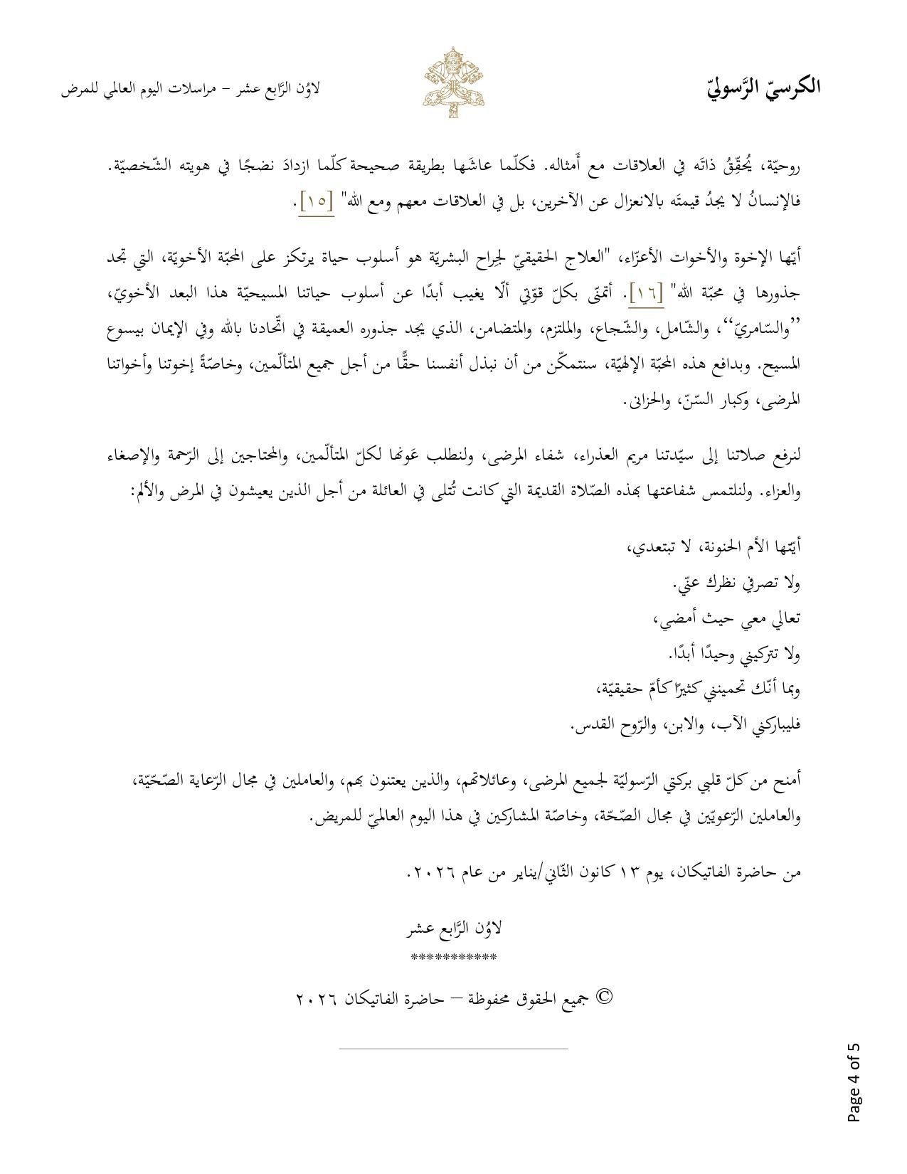 رسالة قداسة البابا لاوُن الرَّابع عشر