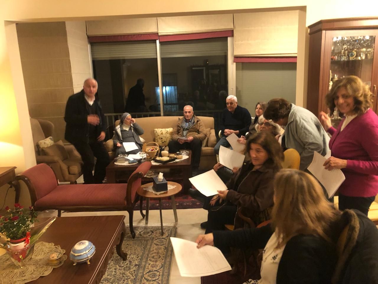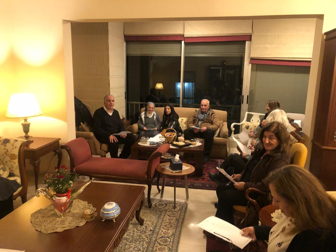 "في أجواء مفعمة بالإيمان والشركة الروحية وبتوجيه وإرشاد من الأب وسام نصار، استضاف السيد جوزيف قرعا وعقيلته السيدة رينا في منزلهما لقاءً روحيًا مميزًا ، تناول خلاله الحضور التأمل في قصة شفاء نعمان السرياني في العهد القديم وربطها بمعاني شفاء الأبرص. وقد شهد اللقاء حضوراً مباركاً من سيدات الأخوية والجيران وأبناء الرعية، حيث ناهز عدد المشاركين ٢٠ شخصاً، اجتمعوا جميعاً على الصلاة والمشاركة الأخوية."