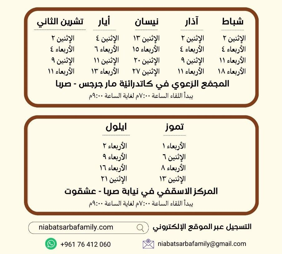 مواعيد القداديس