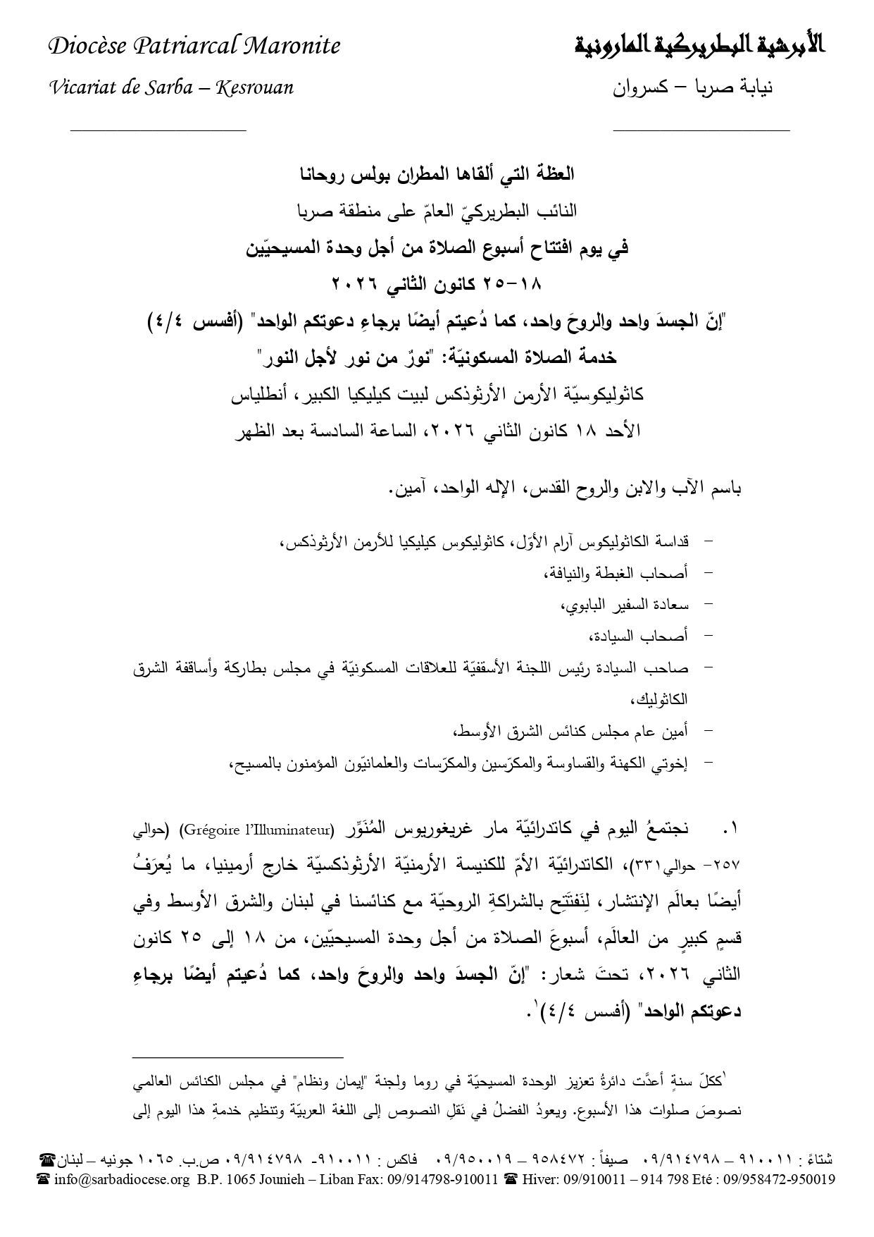 اخبار الأبرشية البطريركية المارونية نيابة صربا