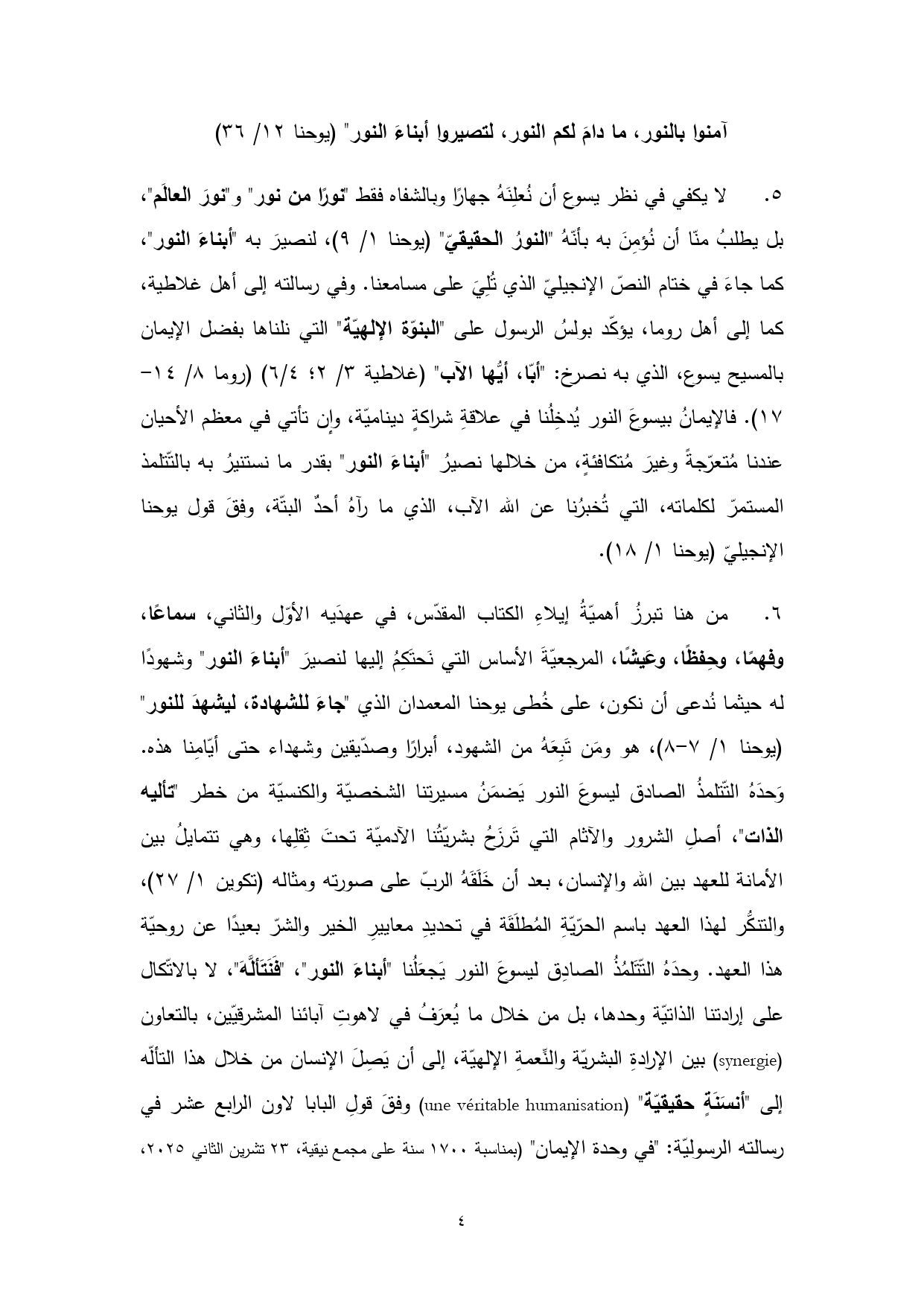 رسالة قداسة البابا لاوُن الرَّابع عشر في اليوم العالميّ التَّاسع والخمسين للسَّلام